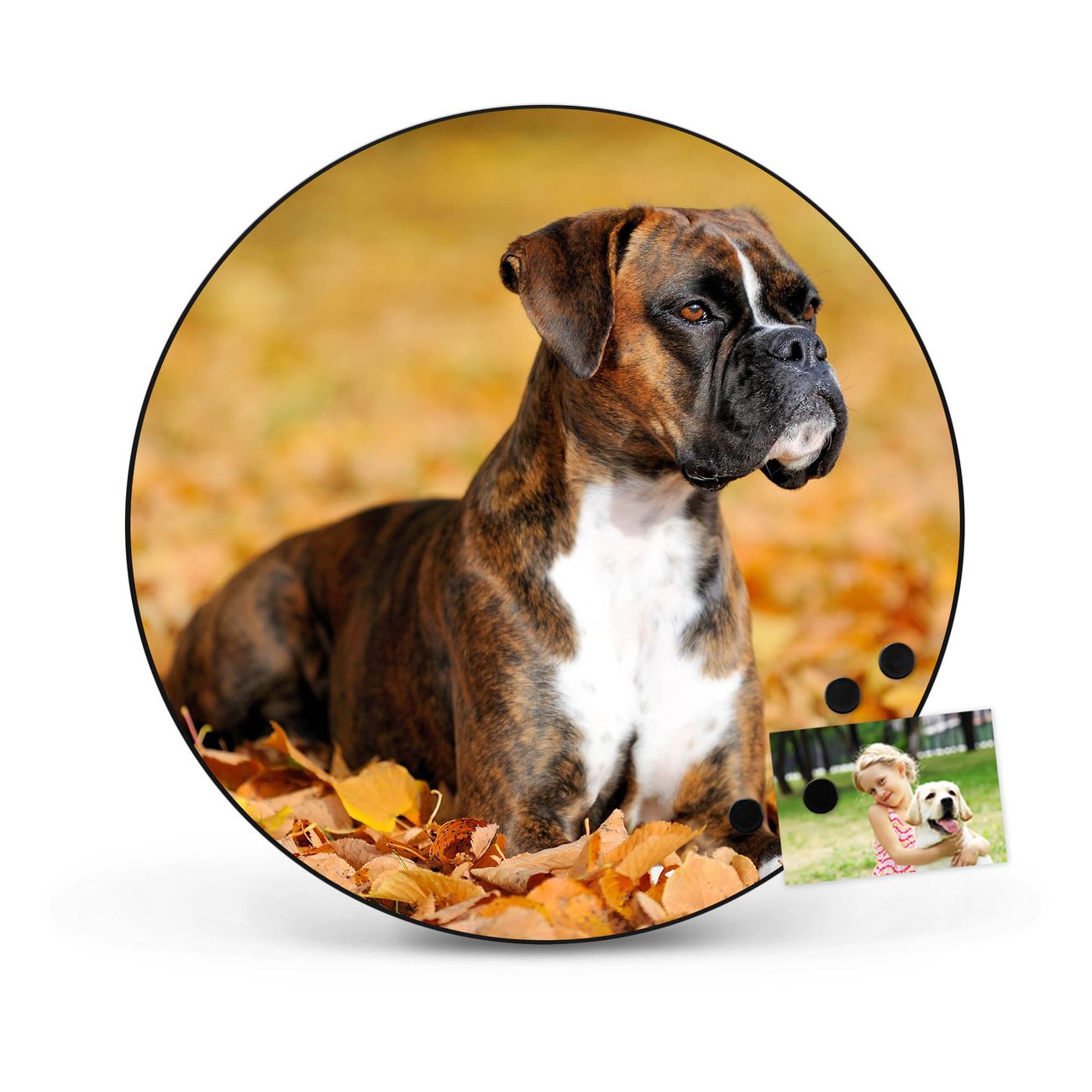FUNKTION / DESIGN Die banjado Magnettafel mit dem Motiv Motiv Wilhelm bringt Ordnung in Ihr Zettelchaos. Fotos, Termine, Notizen oder Rezepte lassen Sich hier stilvoll mit Magneten ordnen, Sie behalten alles im Blick. Die Design Magnetwand ist beschreibbar und wieder abwischbar. Mit dieser Pinnwand haben Sie auch ohne Notizen und Magneten ein schönes Dekoelement. Das Format bietet Ihnen ausreichend Platz um alle wichtigen Informationen im Blick zu behalten. DETAILS / NUTZEN Die magnetische Metall Pinnwand besteht aus schwarz lackiertem Stahl. Sie hat einen Durchmesser von 47cm. Es befinden sich an den Seiten zwei vorgefertigte Löcher die eine schnelle und unkomplizierte Anbringung ermöglichen. Das Motiv ist mit einem seidenmatten Laminat versehen und schützt so zusätzlich vor Kratzern. Es halten alle handelsüblichen Magneten daran. Wir sind ein kleines Team aus dem Herzen von Sachsen. Wir fertigen alle Artikel von Hand für Sie an, Sie erhalten keine preiswerte Importware. Auf Wunsch können Sie auch Ihr eigenes Foto auf die Magnettafel aufbringen, schreiben Sie uns an.