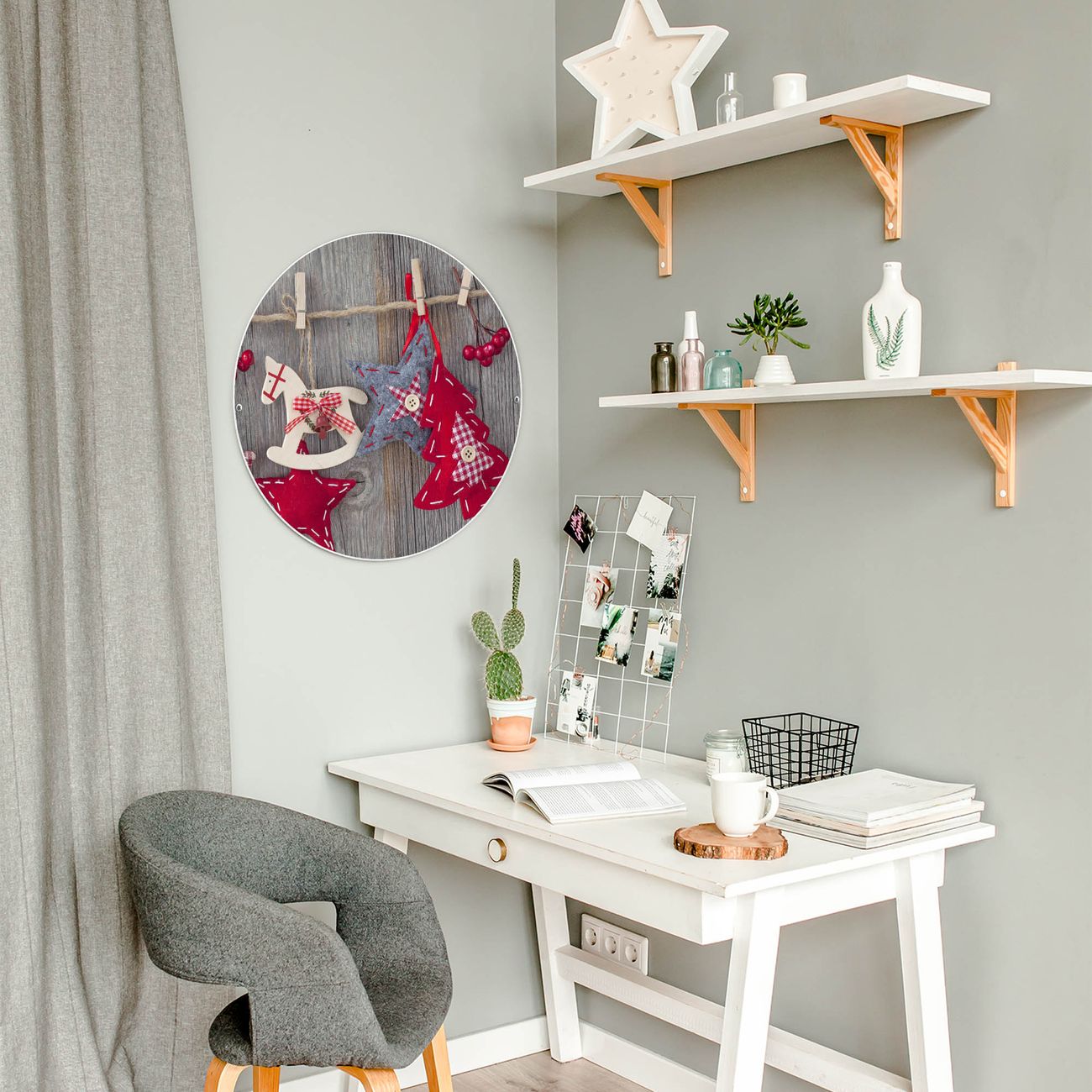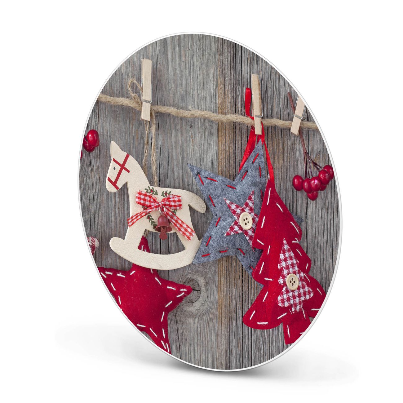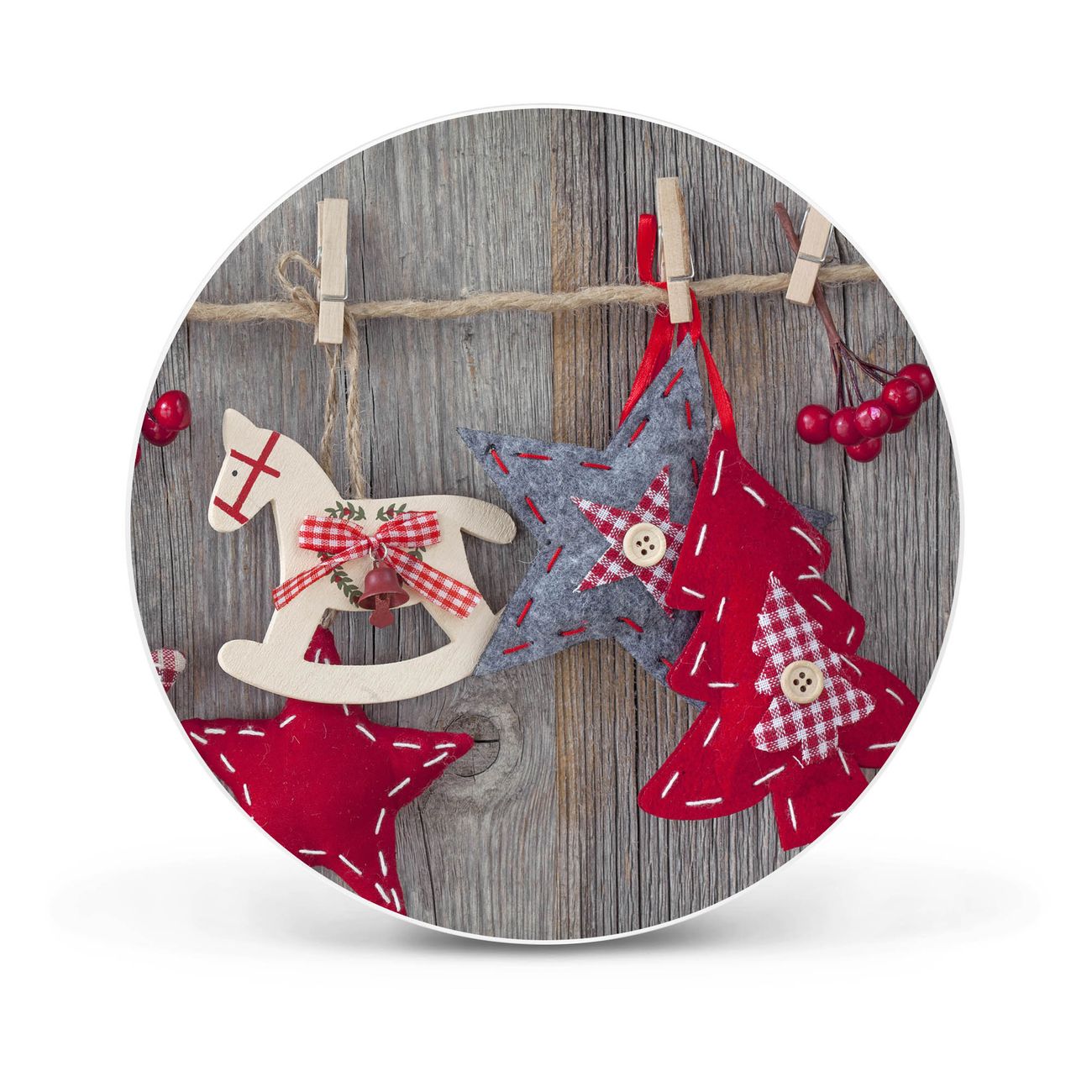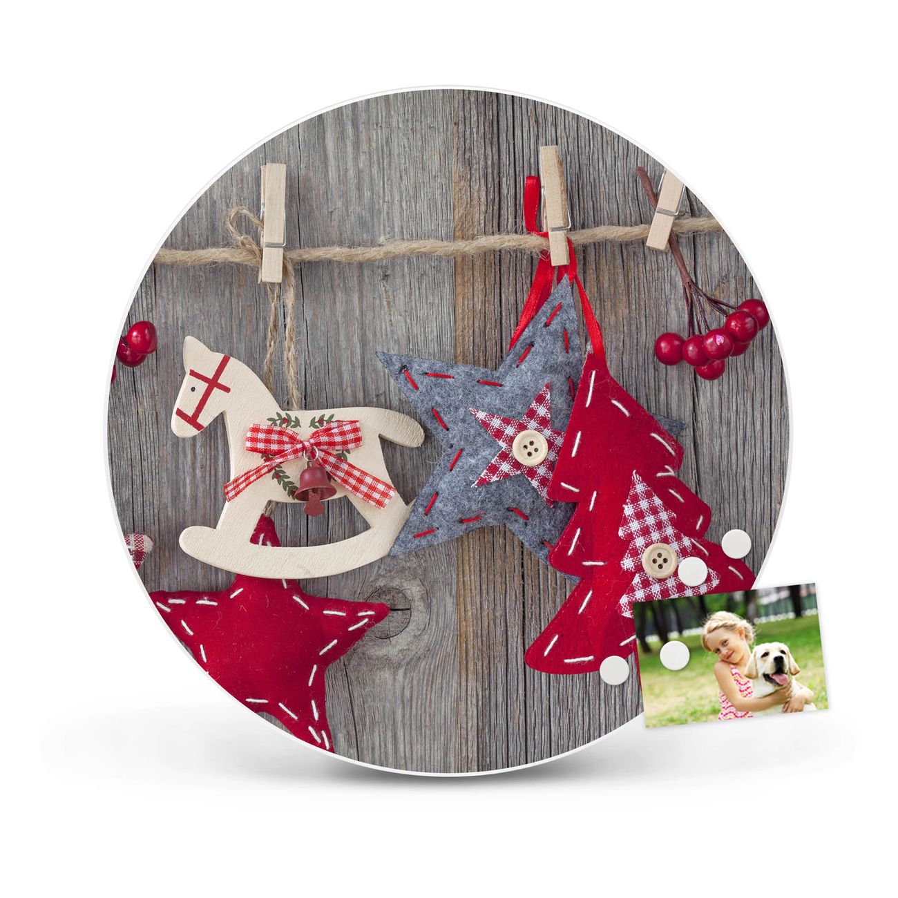 FUNKTION / DESIGN Die banjado Magnettafel mit dem Motiv Motiv Winterdekoration bringt Ordnung in Ihr Zettelchaos. Fotos, Termine, Notizen oder Rezepte lassen Sich hier stilvoll mit Magneten ordnen, Sie behalten alles im Blick. Die Design Magnetwand ist beschreibbar und wieder abwischbar. Mit dieser Pinnwand haben Sie auch ohne Notizen und Magneten ein schönes Dekoelement. Das Format bietet Ihnen ausreichend Platz um alle wichtigen Informationen im Blick zu behalten. DETAILS / NUTZEN Die magnetische Metall Pinnwand besteht aus weiß lackiertem Stahl. Sie hat einen Durchmesser von 47cm. Es befinden sich an den Seiten zwei vorgefertigte Löcher die eine schnelle und unkomplizierte Anbringung ermöglichen. Das Motiv ist mit einem seidenmatten Laminat versehen und schützt so zusätzlich vor Kratzern. Es halten alle handelsüblichen Magneten daran. Wir sind ein kleines Team aus dem Herzen von Sachsen. Wir fertigen alle Artikel von Hand für Sie an, Sie erhalten keine preiswerte Importware. Auf Wunsch können Sie auch Ihr eigenes Foto auf die Magnettafel aufbringen, schreiben Sie uns an.