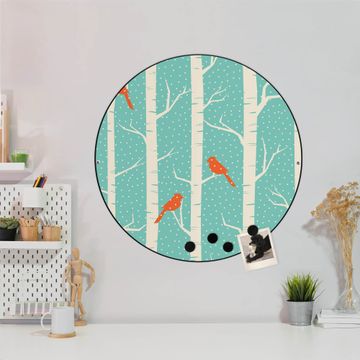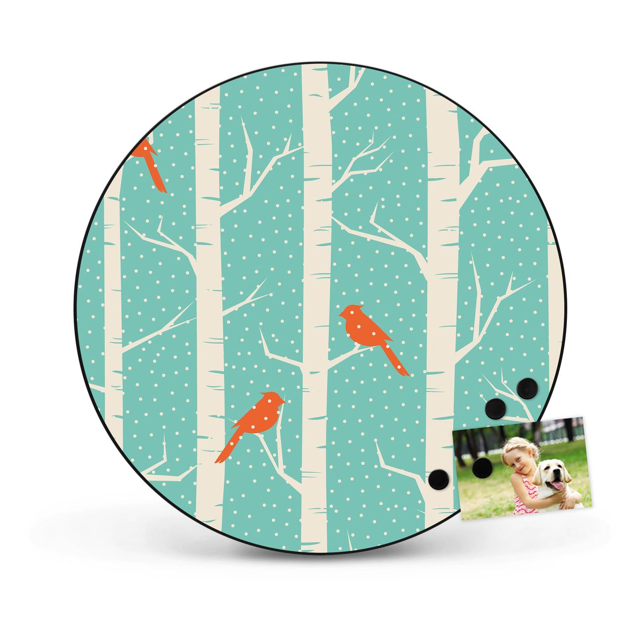 FUNKTION / DESIGN Die banjado Magnettafel mit dem Motiv Motiv Wintervögel bringt Ordnung in Ihr Zettelchaos. Fotos, Termine, Notizen oder Rezepte lassen Sich hier stilvoll mit Magneten ordnen, Sie behalten alles im Blick. Die Design Magnetwand ist beschreibbar und wieder abwischbar. Mit dieser Pinnwand haben Sie auch ohne Notizen und Magneten ein schönes Dekoelement. Das Format bietet Ihnen ausreichend Platz um alle wichtigen Informationen im Blick zu behalten. DETAILS / NUTZEN Die magnetische Metall Pinnwand besteht aus schwarz lackiertem Stahl. Sie hat einen Durchmesser von 47cm. Es befinden sich an den Seiten zwei vorgefertigte Löcher die eine schnelle und unkomplizierte Anbringung ermöglichen. Das Motiv ist mit einem seidenmatten Laminat versehen und schützt so zusätzlich vor Kratzern. Es halten alle handelsüblichen Magneten daran. Wir sind ein kleines Team aus dem Herzen von Sachsen. Wir fertigen alle Artikel von Hand für Sie an, Sie erhalten keine preiswerte Importware. Auf Wunsch können Sie auch Ihr eigenes Foto auf die Magnettafel aufbringen, schreiben Sie uns an.
