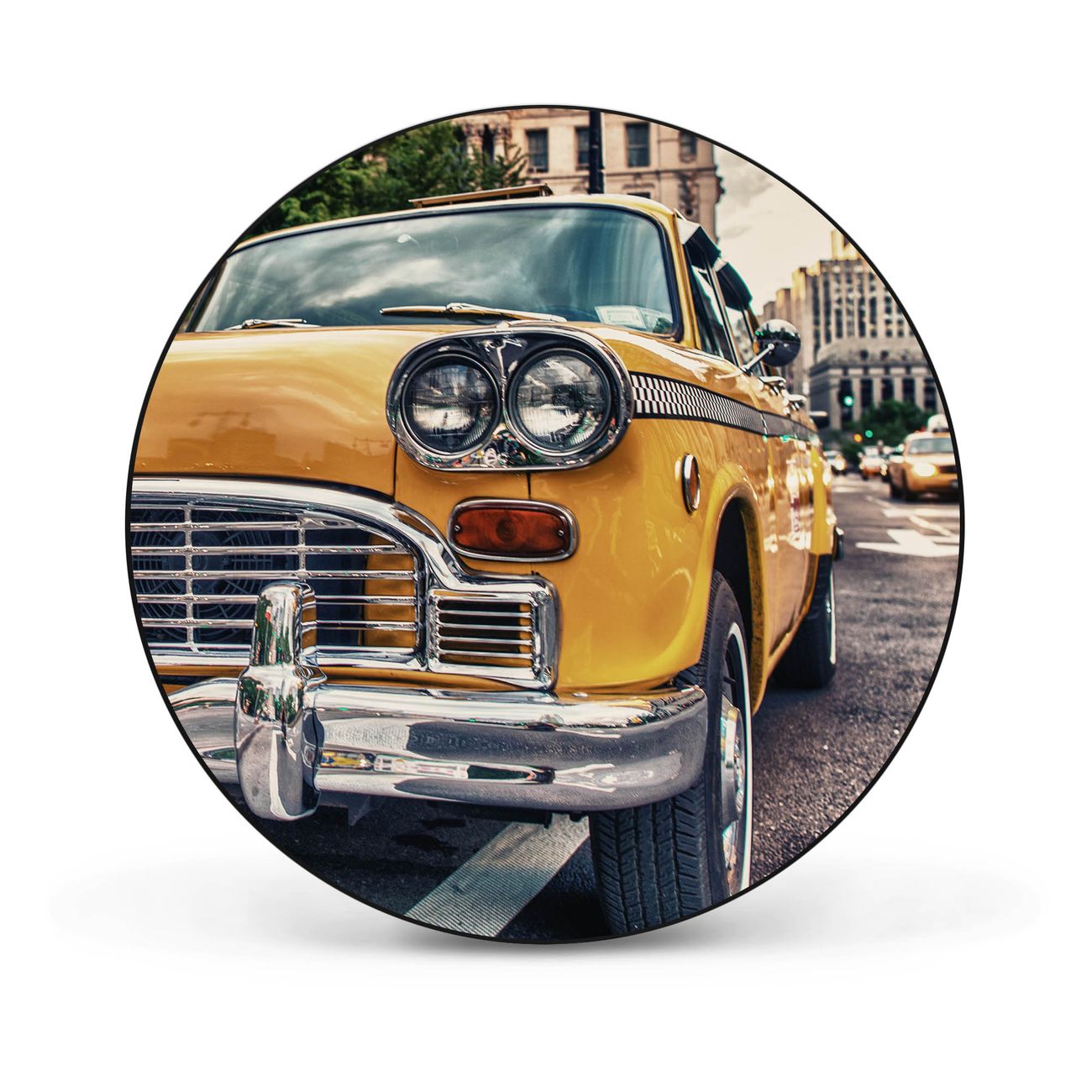 Motiv Yellow Cab Nr. 12418 Material: Stahl schwarz lackiert, Premiumfolie Dekorfolie: UV-beständig, mit Schutzlaminat Gesamtgröße: 47x47x0,2cm BxHxT Gewicht: ca. 1,25 kg Magnete: für Dekomagnete geeignet beschreibbar: nein Zubehör: 4 Magnete, 2 Schrauben und Dübel