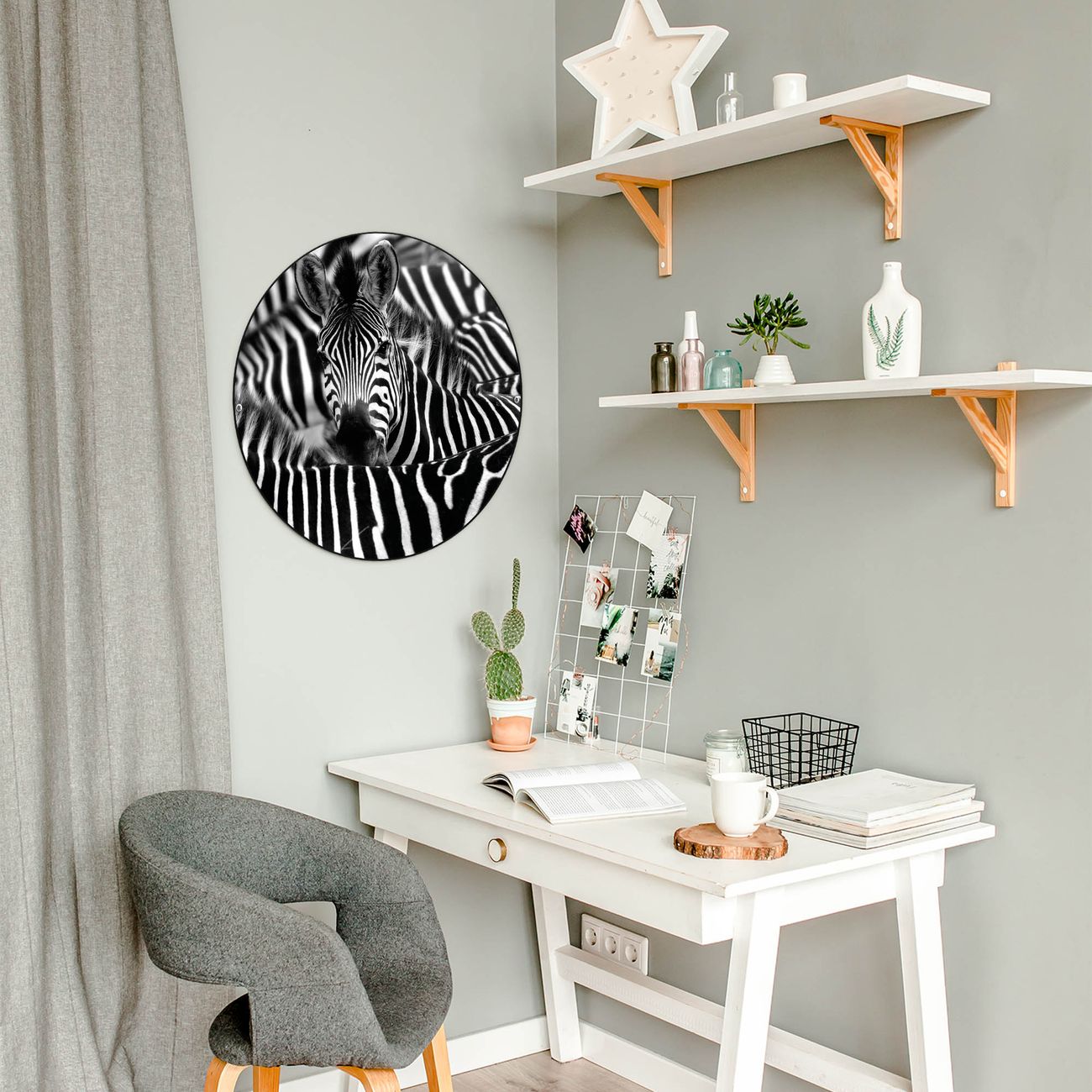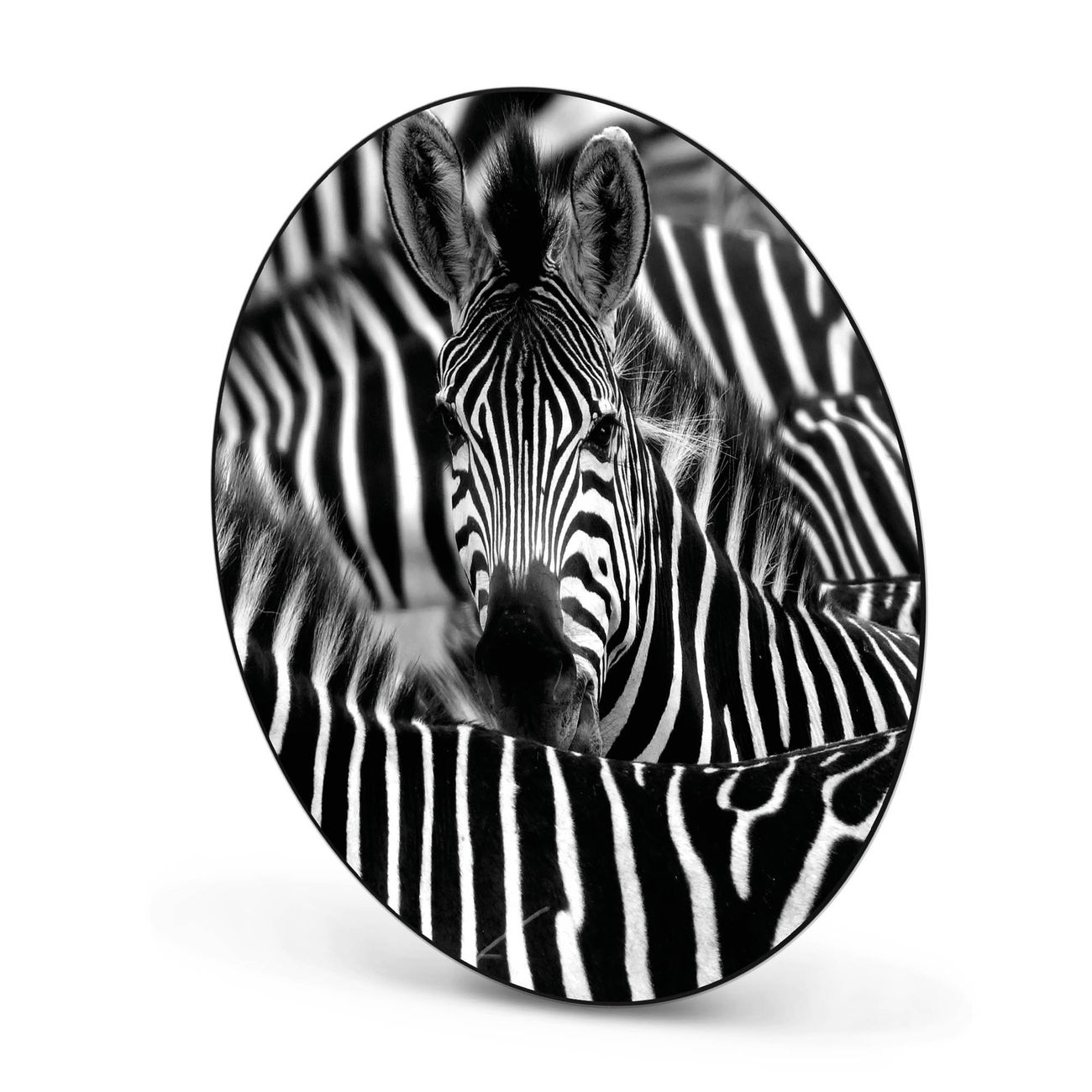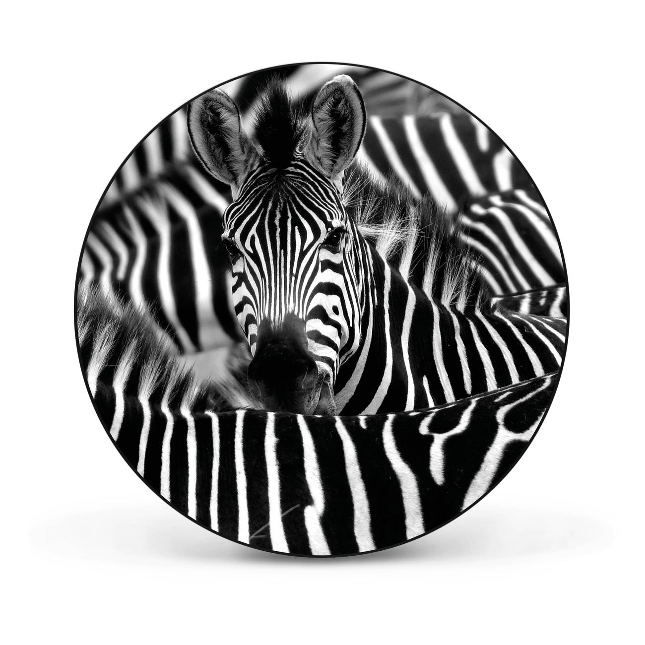 Motiv Zebras Nr. 11354 Material: Stahl schwarz lackiert, Premiumfolie Dekorfolie: UV-beständig, mit Schutzlaminat Gesamtgröße: 47x47x0,2cm BxHxT Gewicht: ca. 1,25 kg Magnete: für Dekomagnete geeignet beschreibbar: nein Zubehör: 4 Magnete, 2 Schrauben und Dübel