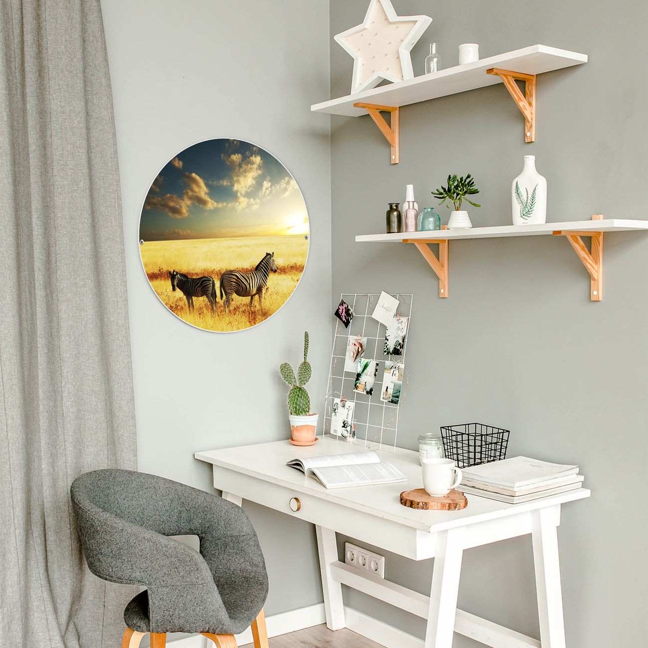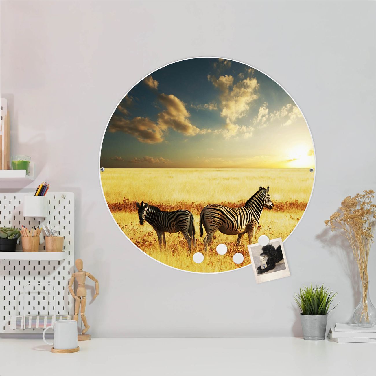 Stahl Magnettafel rund 47cm Zwei Zebras
