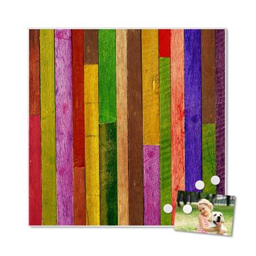 Stahl Magnettafel 50x50cm Holz Collage Bunt
