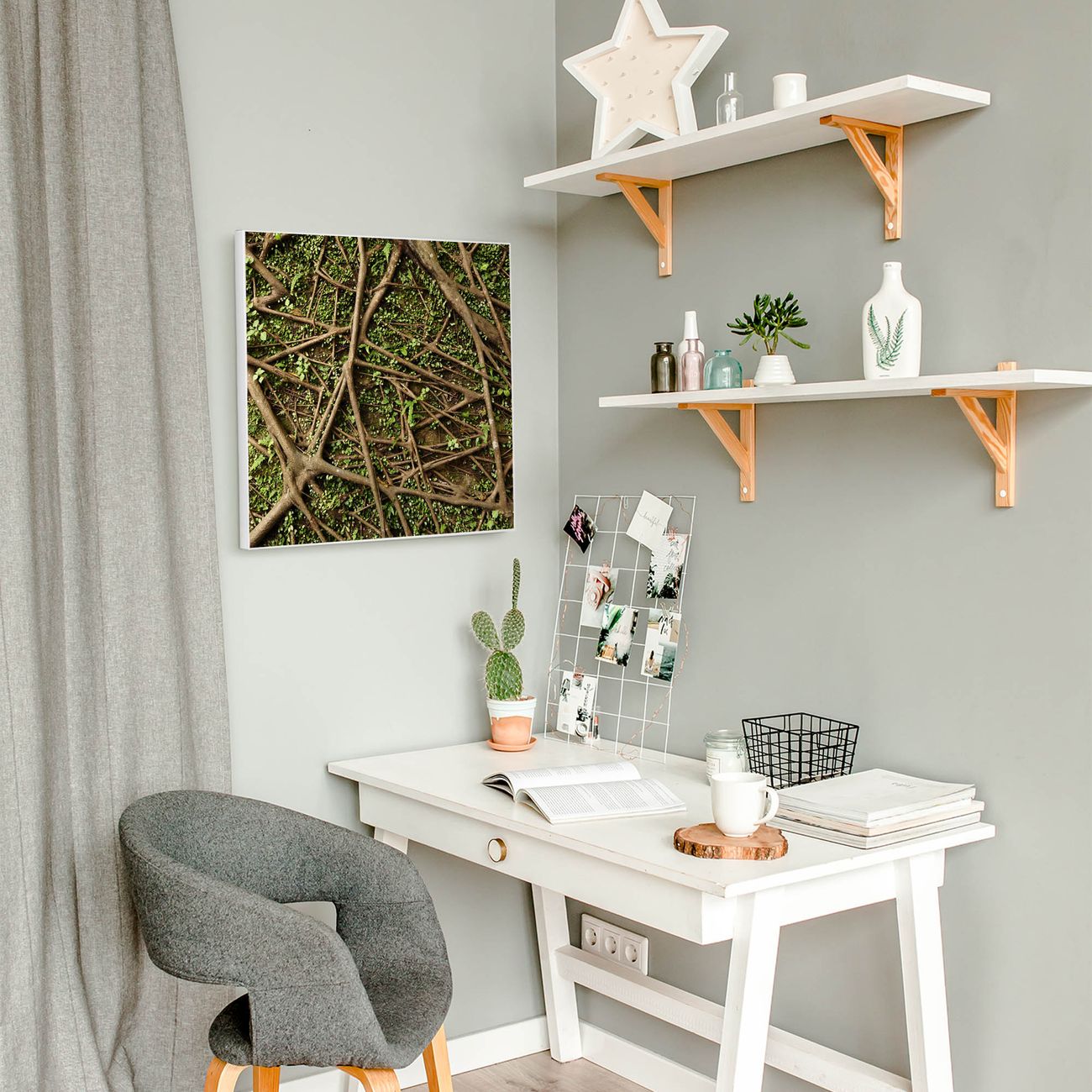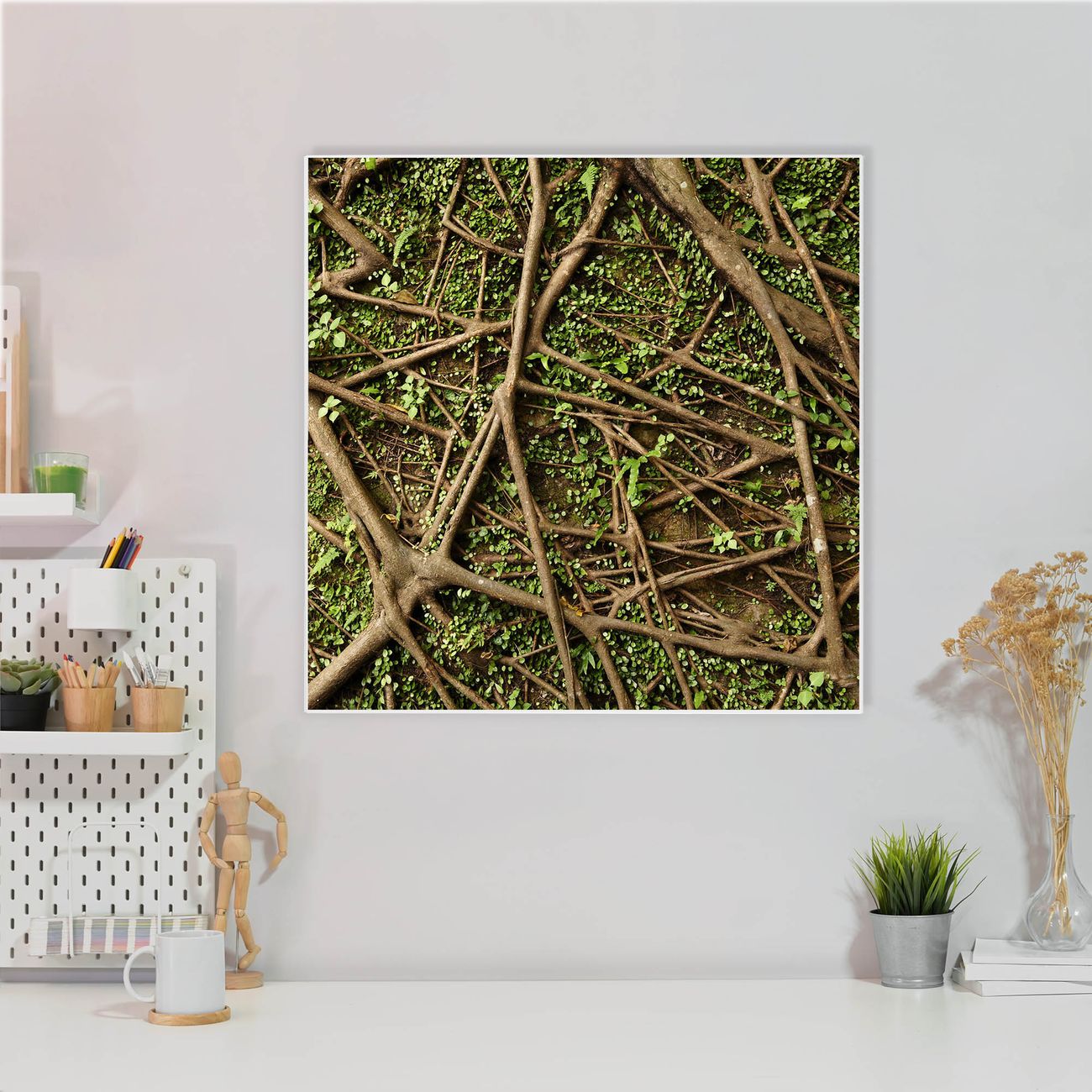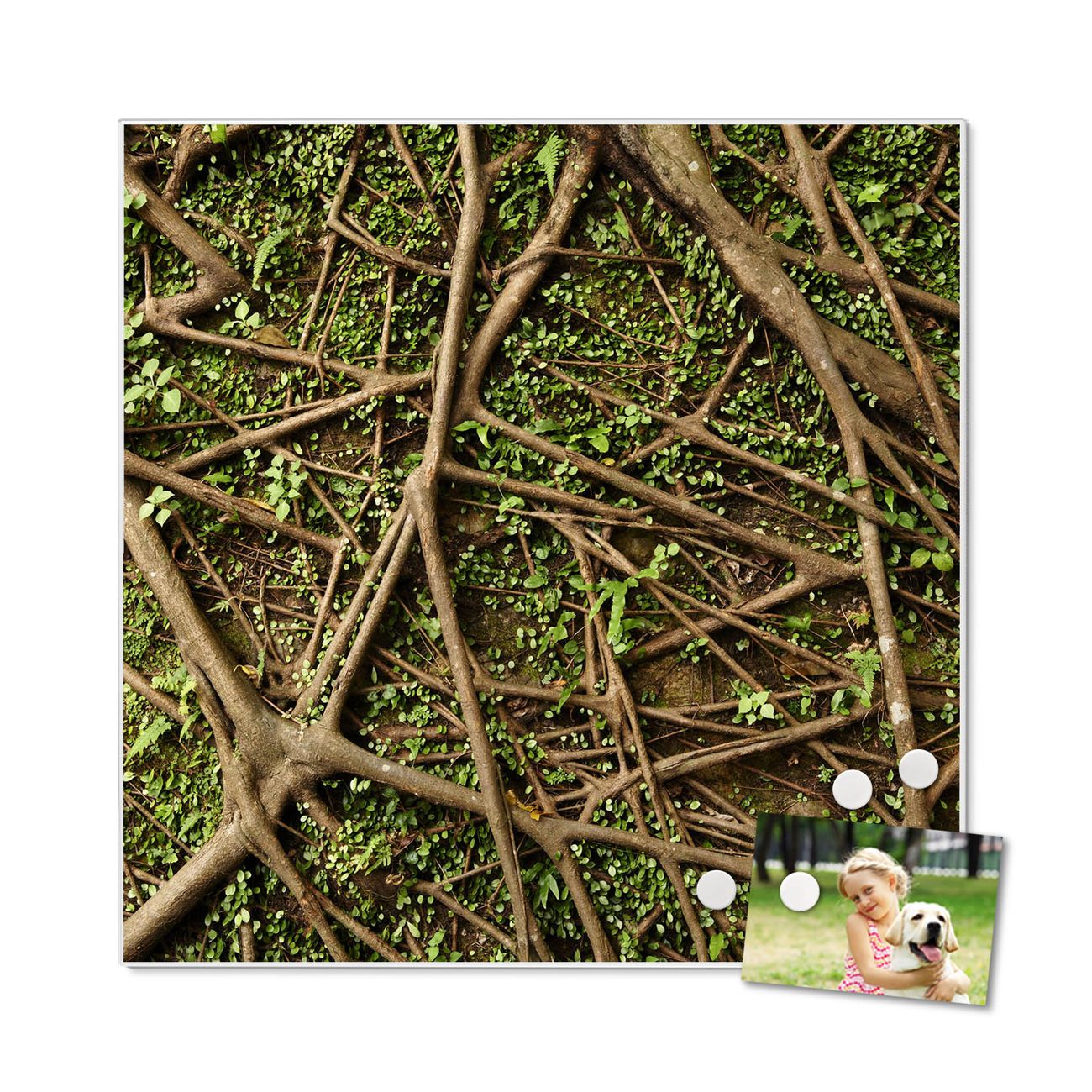 Motiv Baumwurzel Nr. 12775 Größe: 50x50x2cm BxHxT Gewicht: ca. 1,5 kg Material: Stahl weiß lackiert, Premiumfolie mit Schutzlaminat Magnete: für Dekomagnete geeignet beschreibbar: Nein Format: Quadratisch Zubehör: 4 Magnete, Schrauben und Dübel