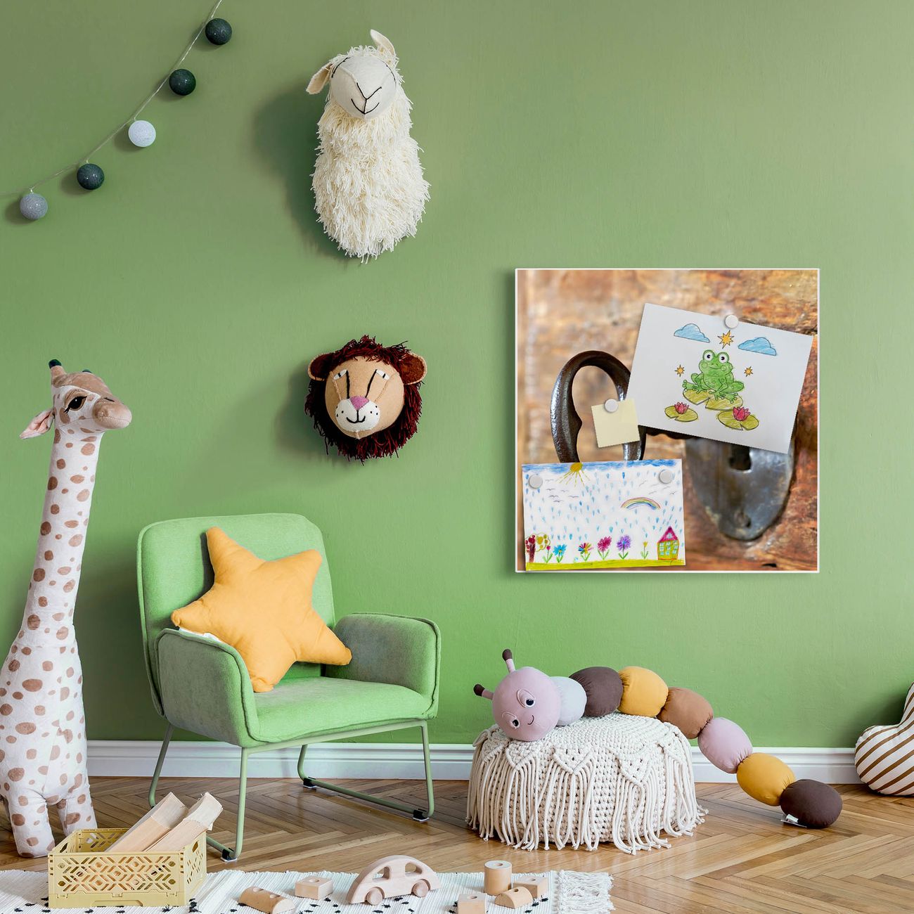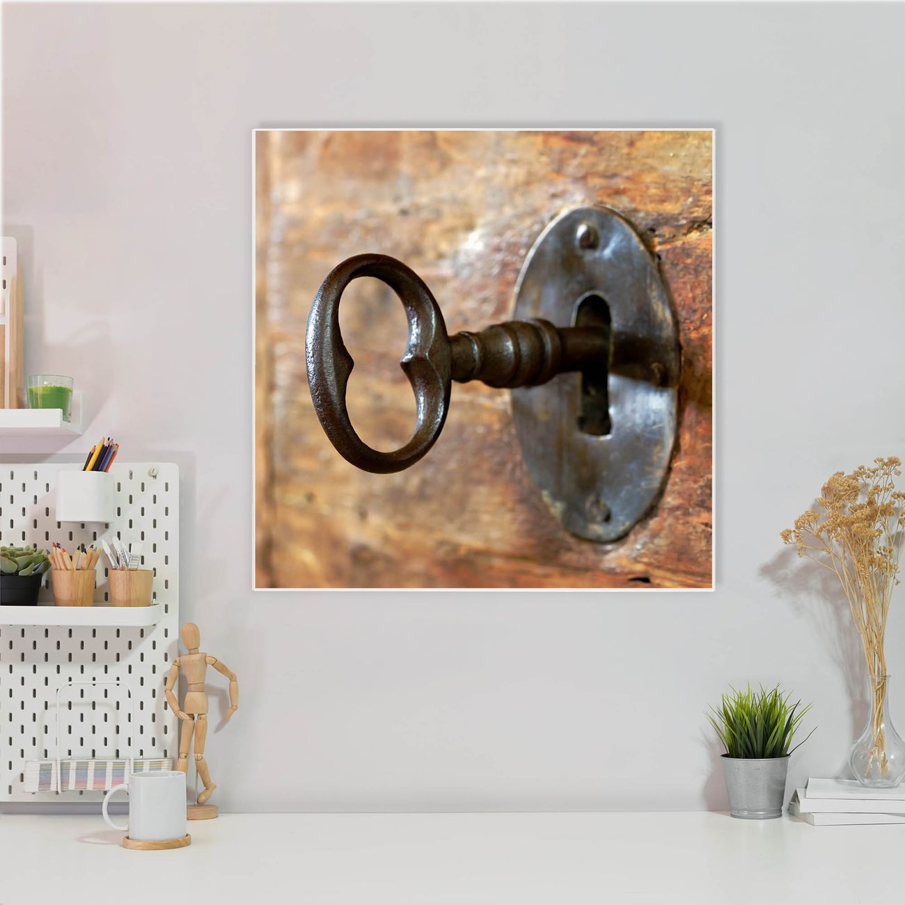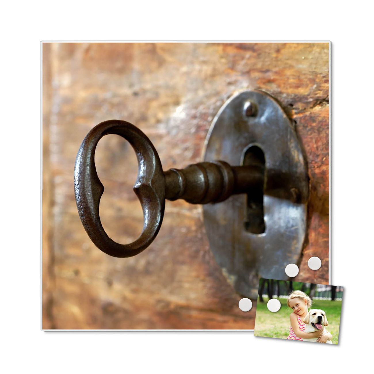 Motiv Schlüssel Nr. 11300 Größe: 50x50x2cm BxHxT Gewicht: ca. 1,5 kg Material: Stahl weiß lackiert, Premiumfolie mit Schutzlaminat Magnete: für Dekomagnete geeignet beschreibbar: Nein Format: Quadratisch Zubehör: 4 Magnete, Schrauben und Dübel